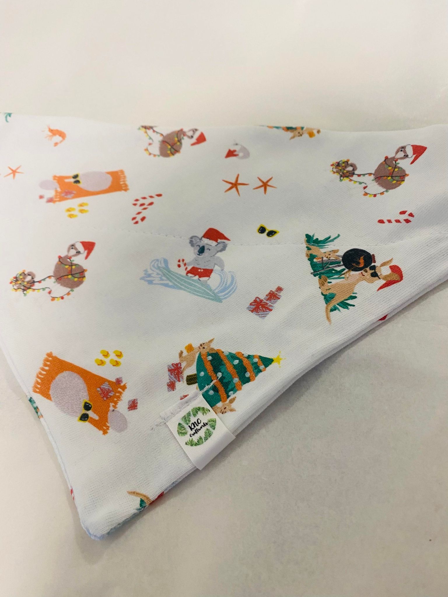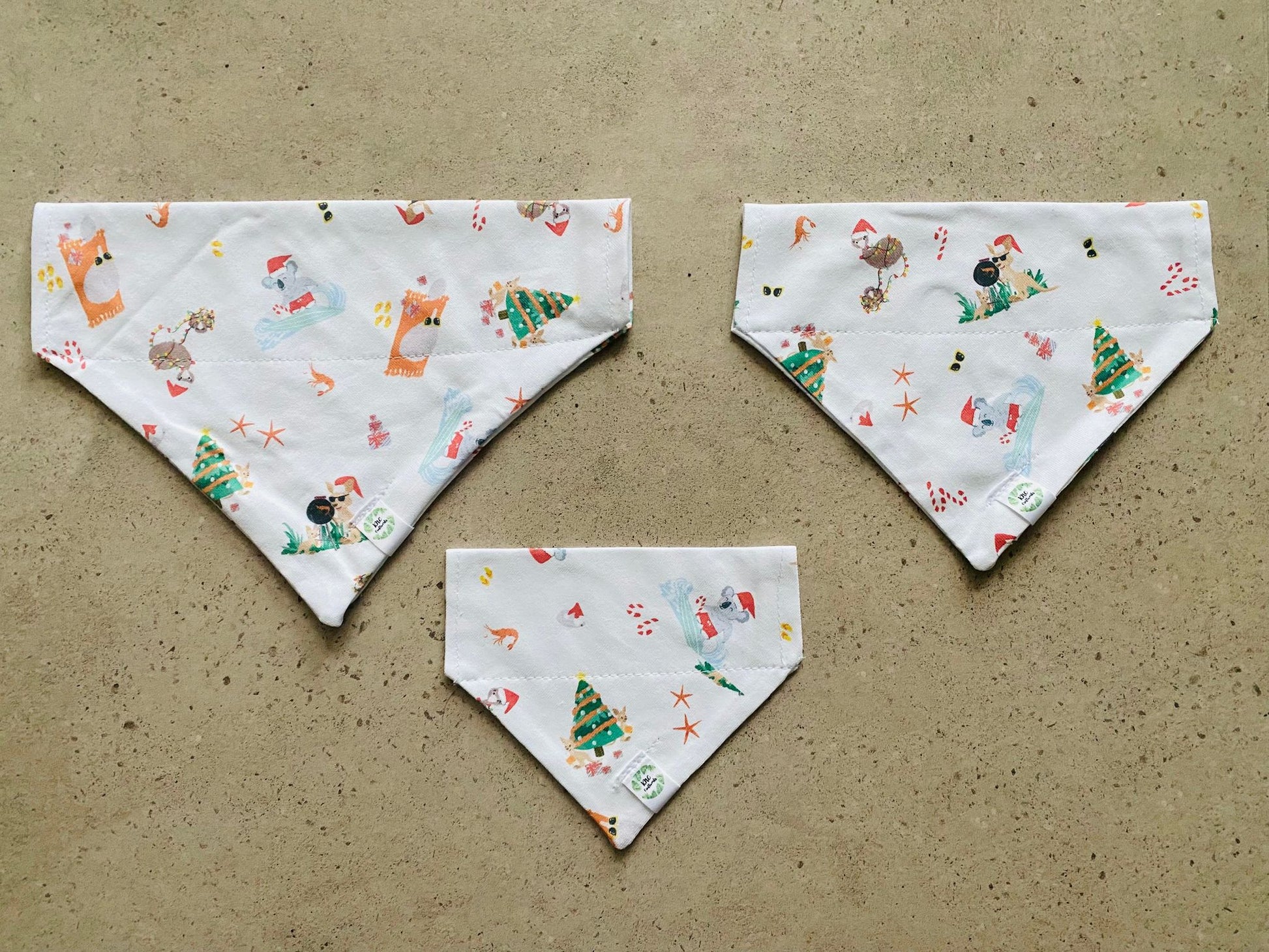 Pets are part of the family so make sure they match with your family Aussie Christmas sets! These Pet Danna's are designed to slip onto your pet's existing collar. Fabric is 100% cotton jersey. They are hand made by a small local business called: KNC Craft Works.