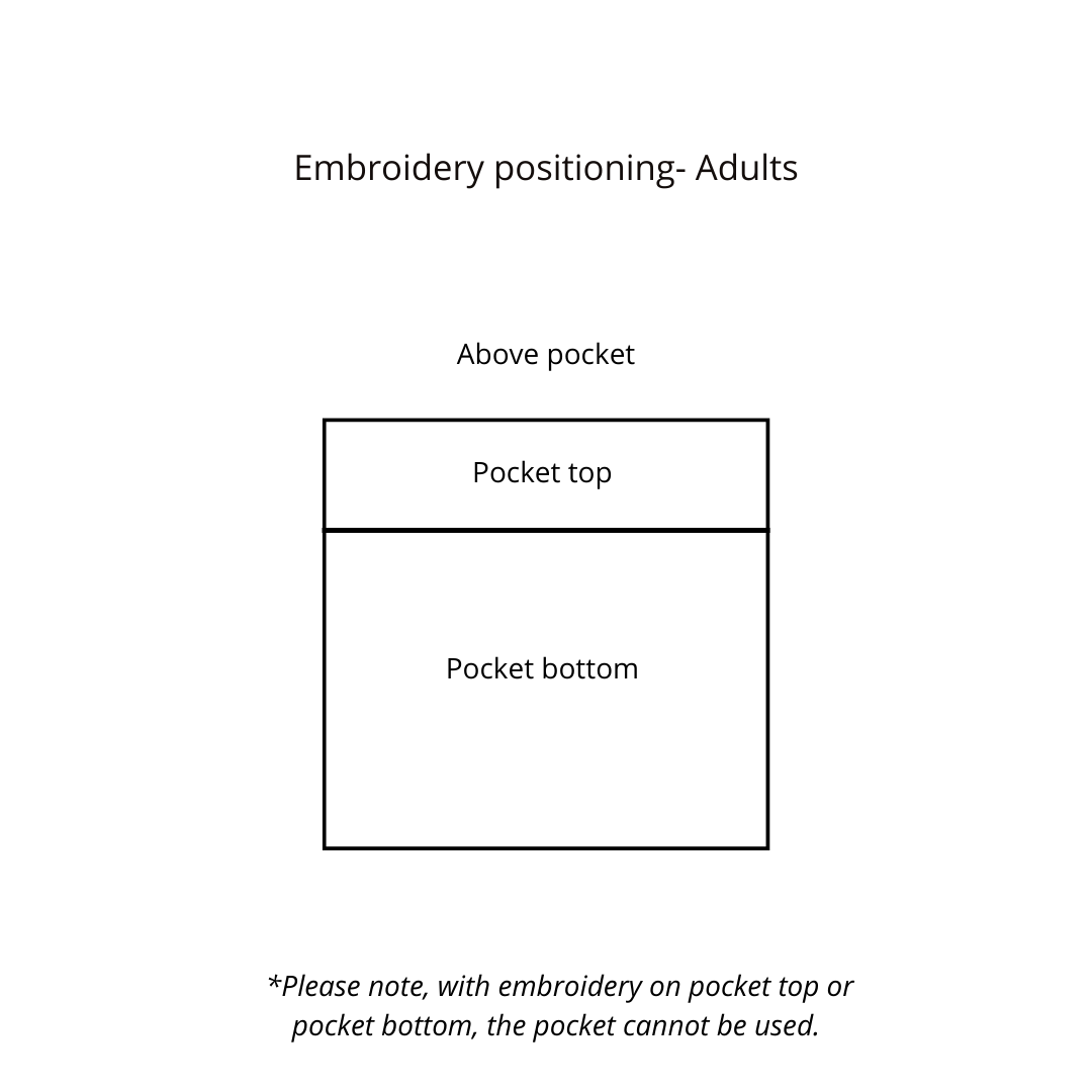 Personalise your set with embroidery above or on the pocket. Please contact us if you have specific requirements. If you require embroidery please allow an extra 5 business days on top of our standard shipping times.